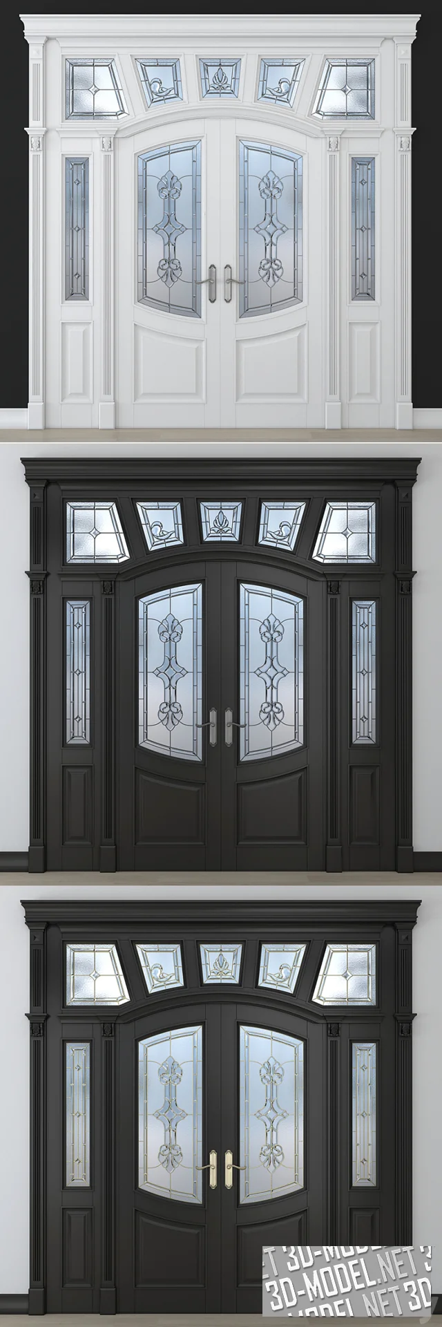 Изысканные двери с витражом, выполненные в классическом стиле. Представлены в двух вариантах отделки. Универсальные черный и белый цвета украсят разные проекты. Размер полотна двери 2245 х 2500мм, общий размер с обрамлением 2525 х 2625мм.