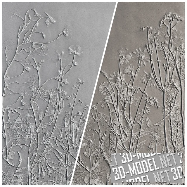 Барельеф создан вручную с детальной проработкой каждого элемента, с использованием живые растения, глины и гипса. Панно можно расписывать акриловыми красками. Размеры панели: 1500мм х 1500мм.