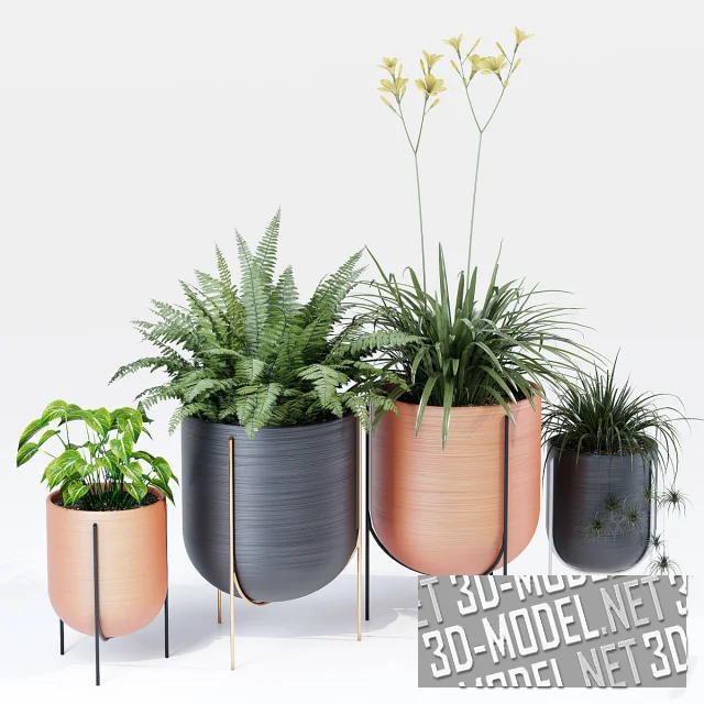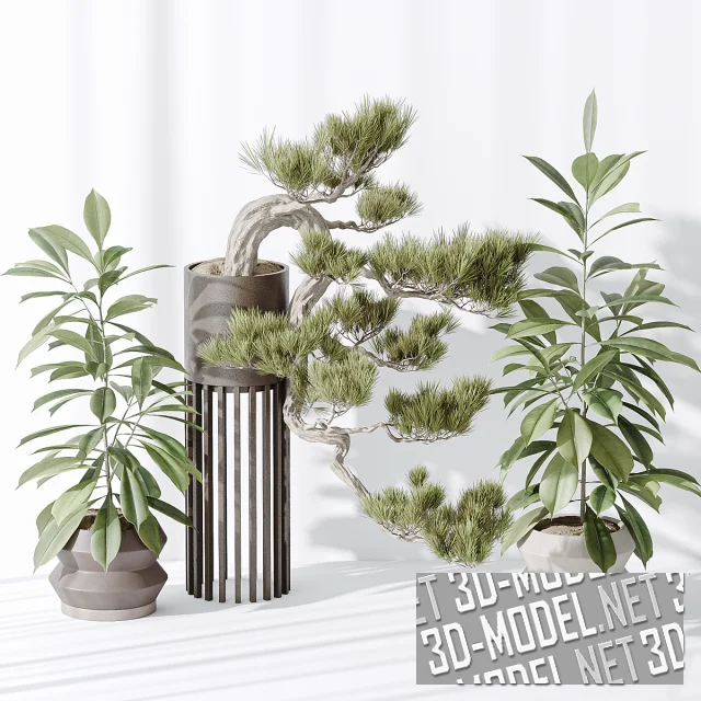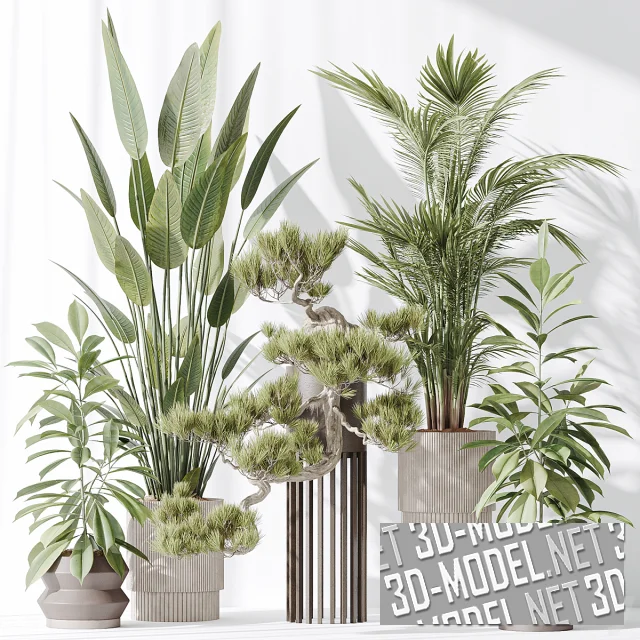 Живописная группа растений для террас, балконов, летних площадок. Горшки разной формы и размера в оттенках серого. В коллекции два фикуса Циатистипула («африканская фига»), стрелиция («Райская птица»), бонсай из сосны, пальма арека. Высоты растений с горшками: 130см, 150см, 165см, 205см, 255см.
