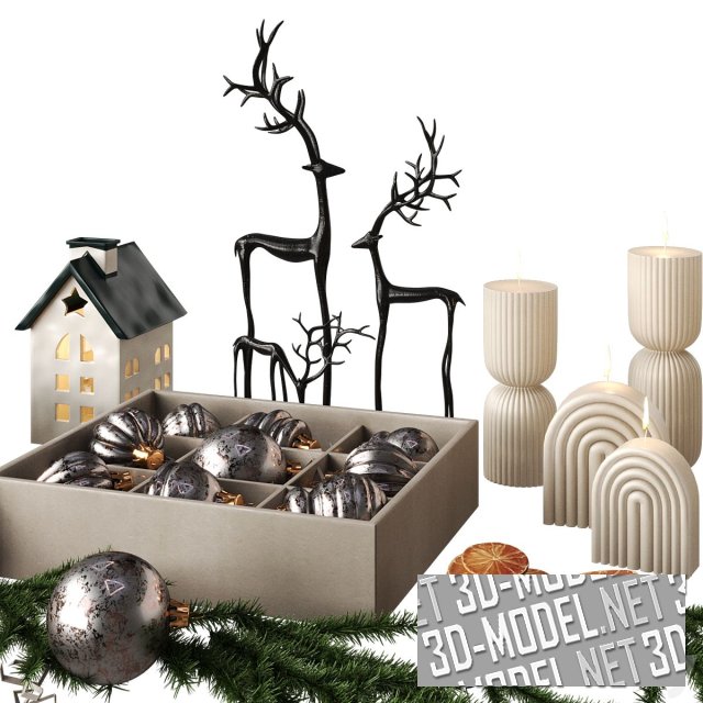 В наборе современный постер с женским портретом, аромат для дома от jo Malone, книга Coco Chanel, скульптуры, свечи и пр. 3d-модель изготовлена с большим вниманием к каждой детали, отличается высоким качеством и реализмом. Текстуры высокого разрешения, материалы Vray и Corona находятся в архиве.