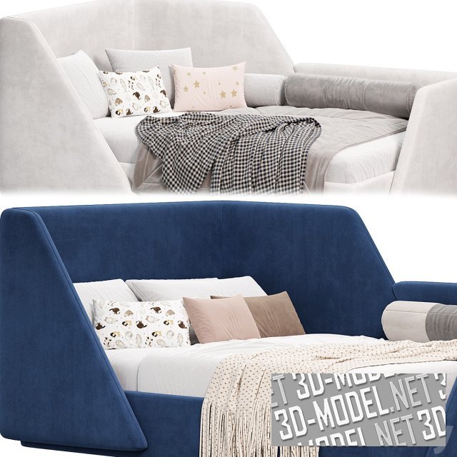 Современная универсальная кровать ESTETA подойдет как для детей, так и подростков. Представлена в двух вариантах цветовой отделки (белый и синий). Комофортная кровать имеет мягкое изголовье и бортики по бокам. В комплекте подушки, валики, матрас и покрывало. Габариты кровати: Ш 2170 x Г 1320 x В 960 мм.