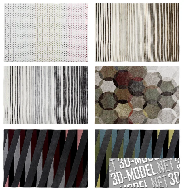 Эта высококачественная 3D-модель идеально подходит для использования в визуализации интерьеров, дизайнерских проектах и других приложениях, обеспечивая точное и визуально привлекательное представление, подчеркивающее роскошные материалы и современный стиль ковров.