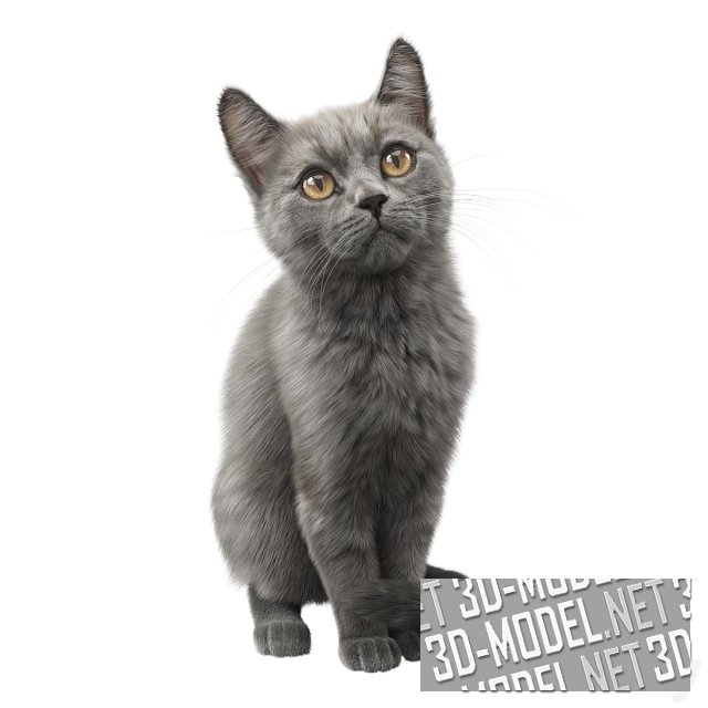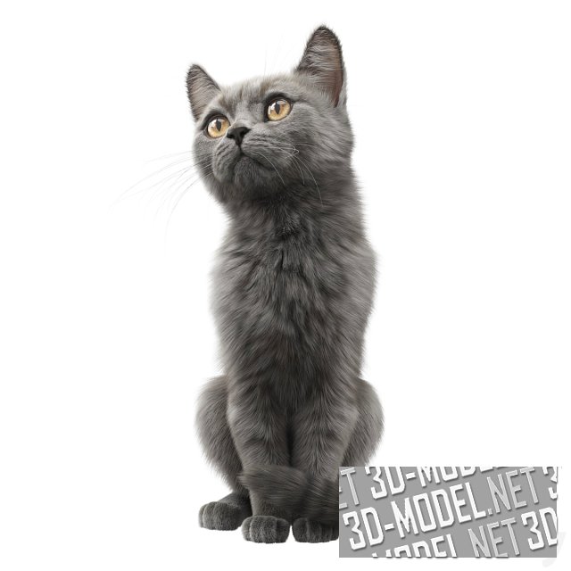 Невероятно реалистичный, трогательный и пушистый кот Федор с желтыми глазами. Кот сидит и преданно смотрит - возможно, на хозяина. Качественная 3d-модель с настроенными материалами и текстурами в архиве, которая добавит "мяу" в любой проект.