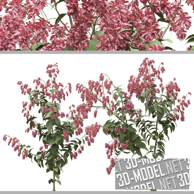 Крупный куст садового декоративного растения - бугенвиллия с густыми гроздьями соцветий. Растение высажено в небольшую полукруглую клумбу с бортиком из бетона, стыкующуюся к серой бетонной плите забора. Поверхность грунта в клумбе декорирована несколькими огальтованными камнями среднего размера. Представлены три цвета бугенвиллии: малиновый, белый и сиреневый. Габарит сцены: 490,36х189,95х462,79см.