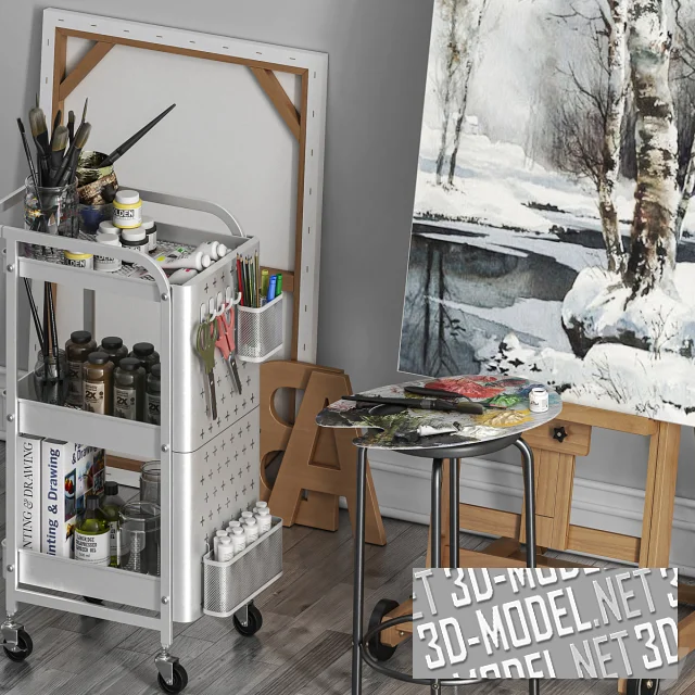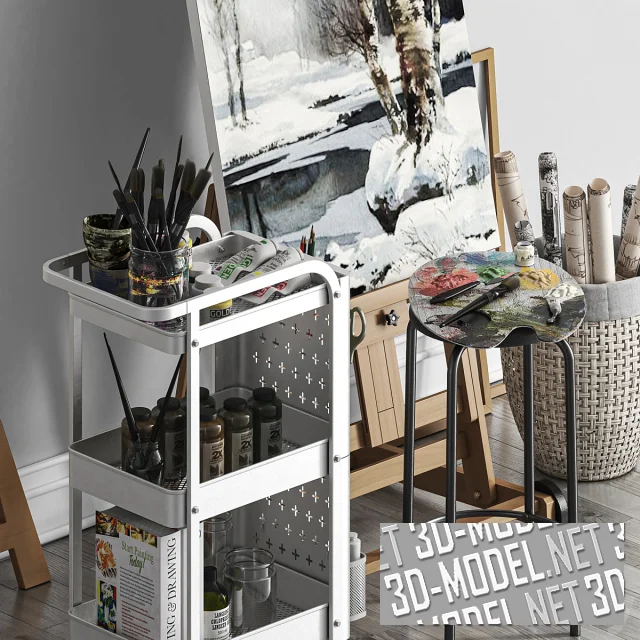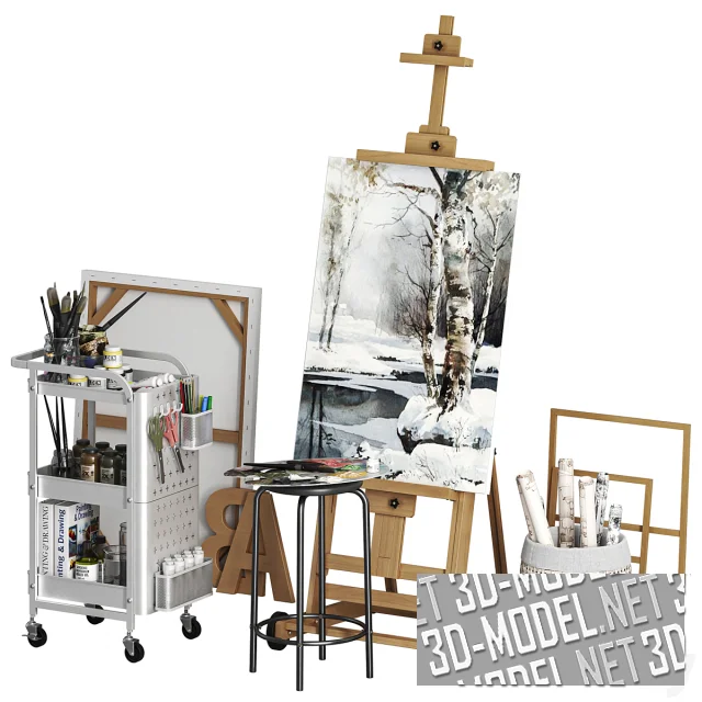 В наборе присутствует множество аксессуаров и принадлежностей для творчества (книги, кисти, краски и пр.)