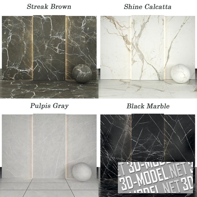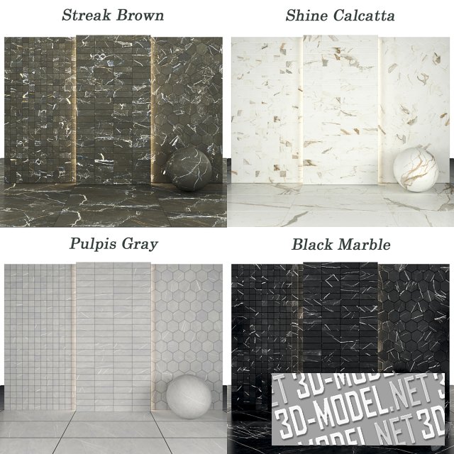 6 текстур Pulpis Gray Marble, 7 текстур черного мрамора с глянцевым блеском,