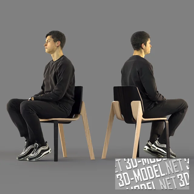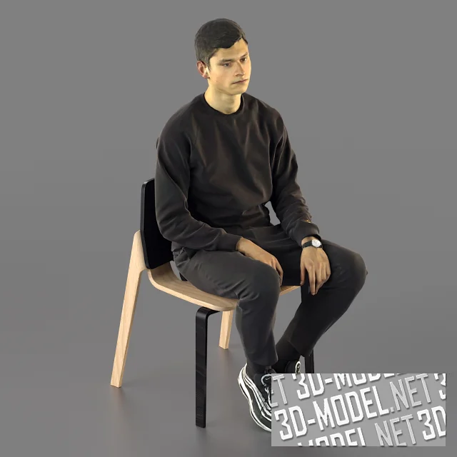 Молодой темноглазый парень Крис (Chris), с темными волосами средней длины, идущий с телефоном в поднятой к уху руке. На парне светло-серый худи под теплой клетчатой серо-бело-охристой рубашкой. Брюки темно-песочного цвета и потертые низкие белые кеды завершают образ.