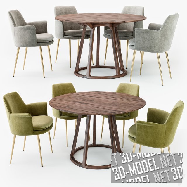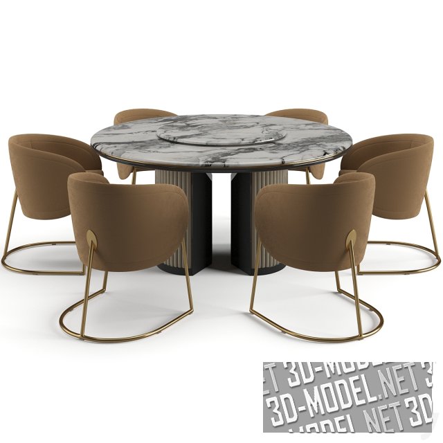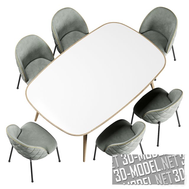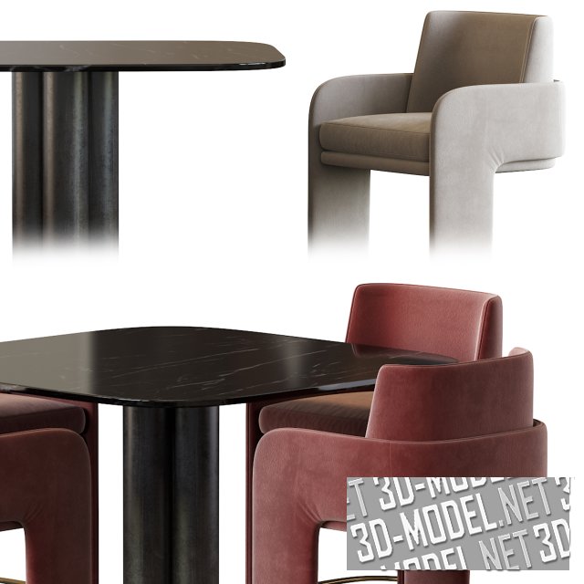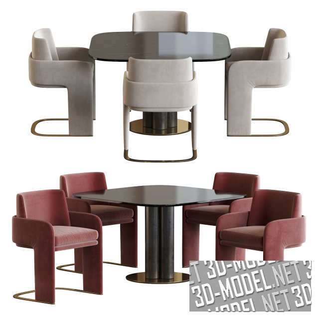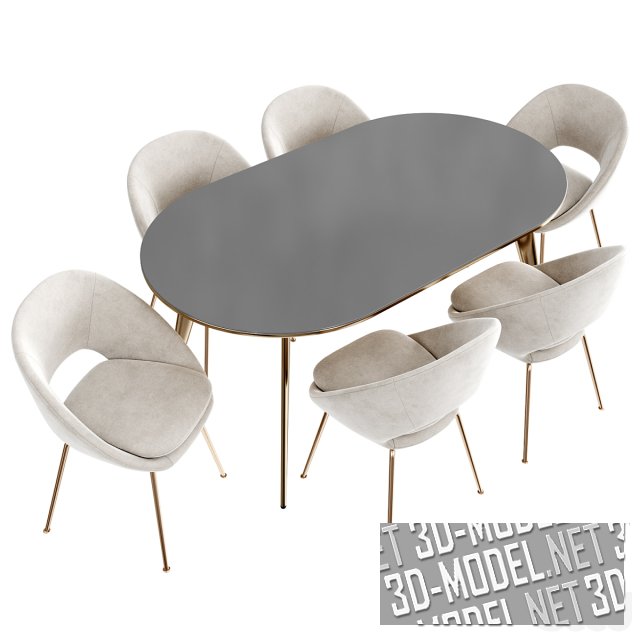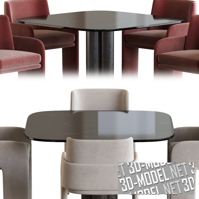 Набор комфортной мебели для обеденной зоны. Состоит из стола Goya от итальянской компании Arflex и кресел Odisseia от португальской компании Dooq. Arflex и Odisseia – одни из лучших производителей современной дизайнерской мебели. Кресло представлено в двух вариантах обивки серого и терракотового цветов, а в сочетании со столом представляет собой прекрасный комплект для обеденной зоны.