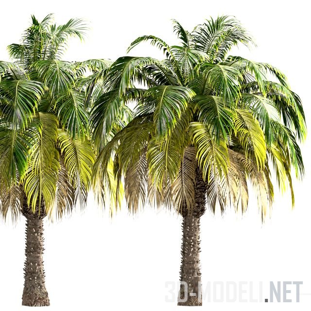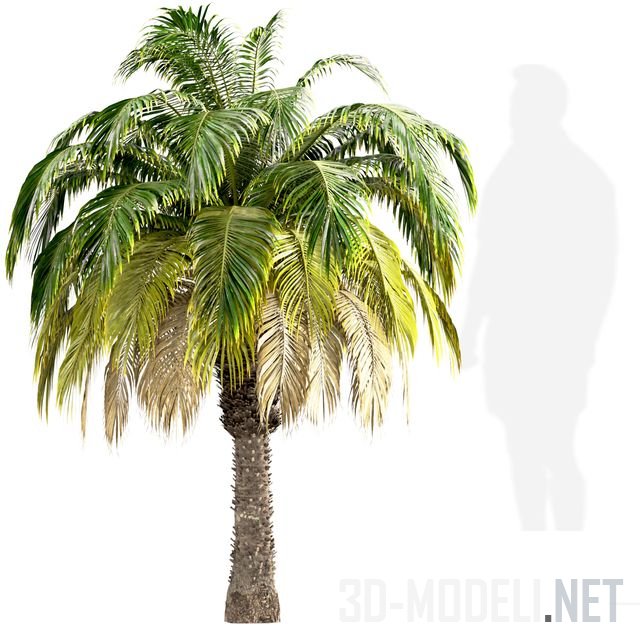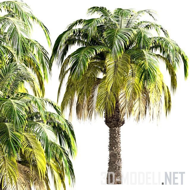 Phoenix roebelenii, миниатюрная финиковая пальма (сцена содержит два разных дерева). Ее часто выращивают в качестве комнатного растения, на открытом воздухе пальма также хорошо себя чувствует.