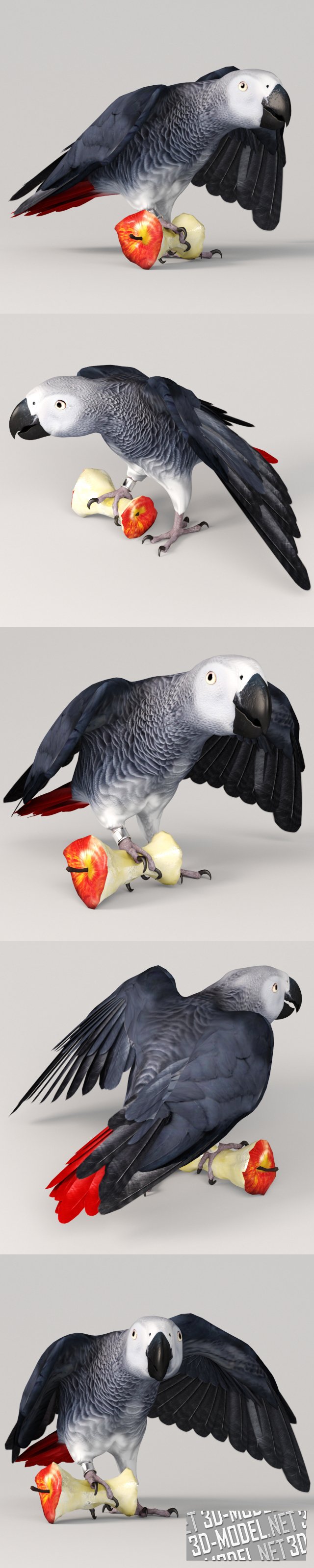 Реалистичная трехмерная копия самого талантливого говорящего попугая Жако, который держит когтями огрызок от яблока. Благодаря своей способности к звукоподражанию птица может запомнить в среднем более 1500 слов.