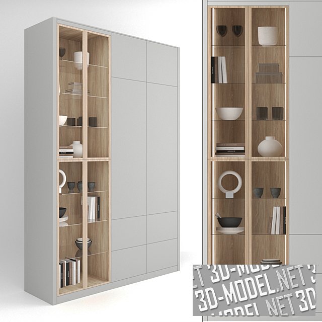 Стеллаж в винтажном стиле с коллекцией декора. В коллекции: пара керамических тарелок на подставках, синяя и зеленая, с охристыми и бордовыми пятнами и с черным кракелюром; золотистые фигурки кисти руки с жестами «ОК», «Victory» и «Класс!»; белые керамические, серебристые металлические, желто-красно-черные деревянные вазы; глобус, модель яхты на подставке, книги, пара коробок в виде сундуков, часы, географическая карта в рамке, скульптура с изображением альпинистов и металлическая модель Эйфелевой башни; стеклянное блюдо на деревянной подставке; старинный телефон и золотистая фигурка сидящего человека.