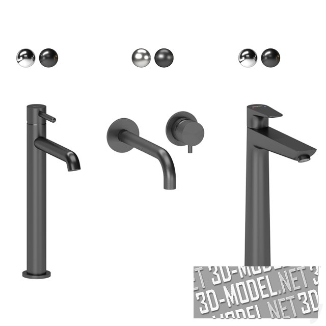 Умывальники круглой формы, накладные. Цвет покрытия желтый и зеленый, что смотрится очень жизнерадостно и современно. Смесители хромированные, предлагаются в варианте настенного монтажа.