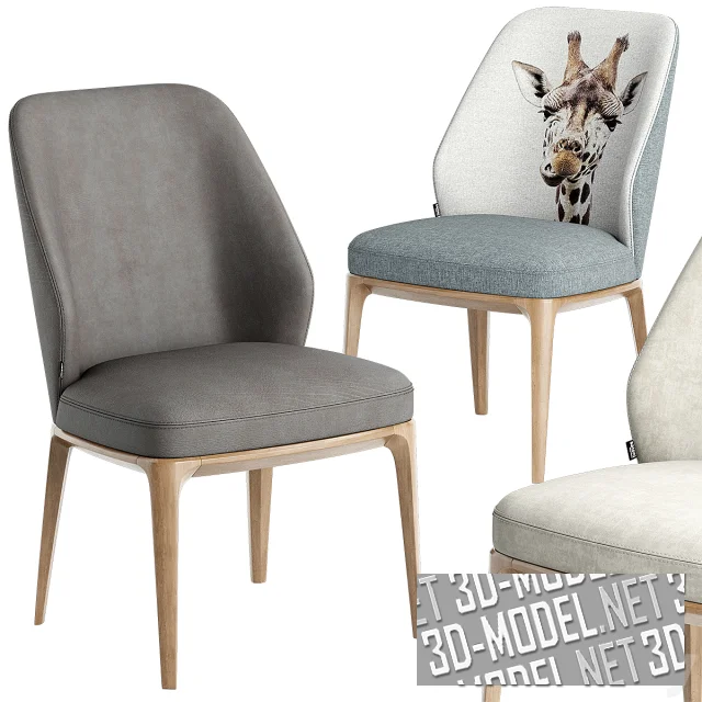 Стулья состоят из двойной огибающей скругленной спинки (наружная низкая, в цвет обивки сиденья и внутренняя высокая вставка белого цвета), мягкого сиденья и металлического трубчатого каркаса с четырьмя ножками и объединяющим элементом. Металл каркаса представлен в двух вариантах: золотистый и серебристый. Обивка сиденья и наружного элемента спинки в нескольких вариантах велюра: белая, бледно-красно-коричневая (темная «пыльная роза»), светло-серая с бежевым оттенком, темно-серая.