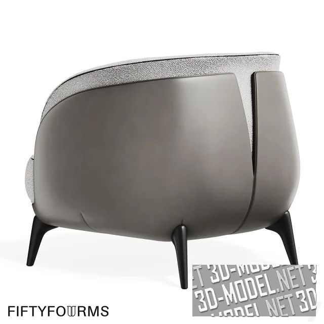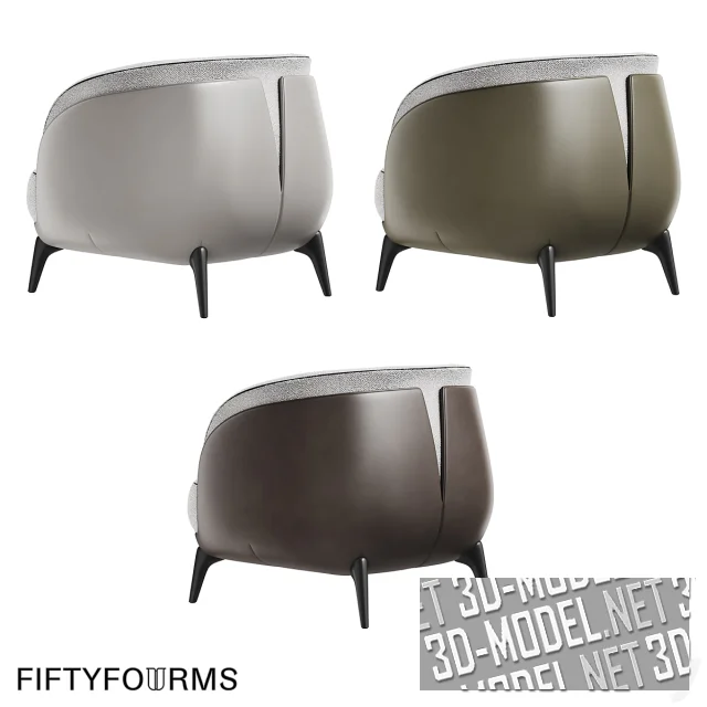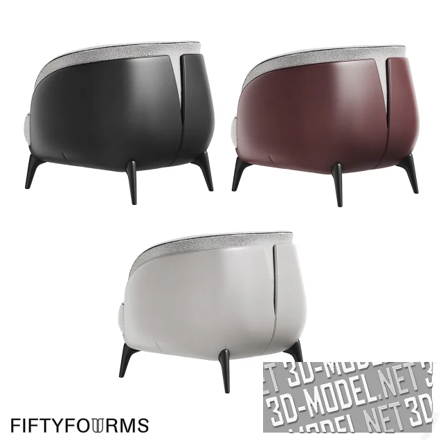 Современное низкое скругленное кресло Pianta от FIFTYFOURMS. Основание с треугольным вырезом сзади, с кожаной обивкой на небольших фигурных черных ножках. В этой «скорлупе» смонтированы мягкая подушка сиденья и мягкая огибающая невысокая спинка, переходящая в подлокотники. Текстурная, коротковорсовая обивка (светло-серого, серого или бледно-коричневого цветов) декорирована по кромкам черным декоративным шнуром. Кожаная обивка наружной «оболочки» представлена в нескольких вариантах (белая, светло-серая, серая, черная, коричнево-красная, шоколадная, коричнево-оливковая). Габарит кресла: 84,5х84,11х74,55см.