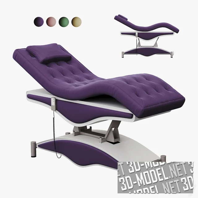 Доступна в нескольких цветовых вариантах, от спокойных пастельных до ярких и насыщенных оттенков, что позволяет подобрать модель под любой интерьер салона. Прочный металлический каркас гарантирует устойчивость и долговечность, а мягкий матрас с анатомической формой делает процедуры особенно комфортными.
