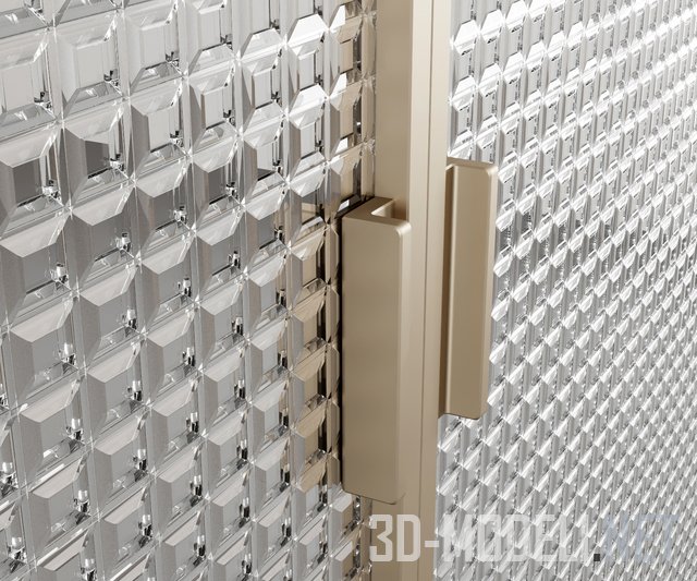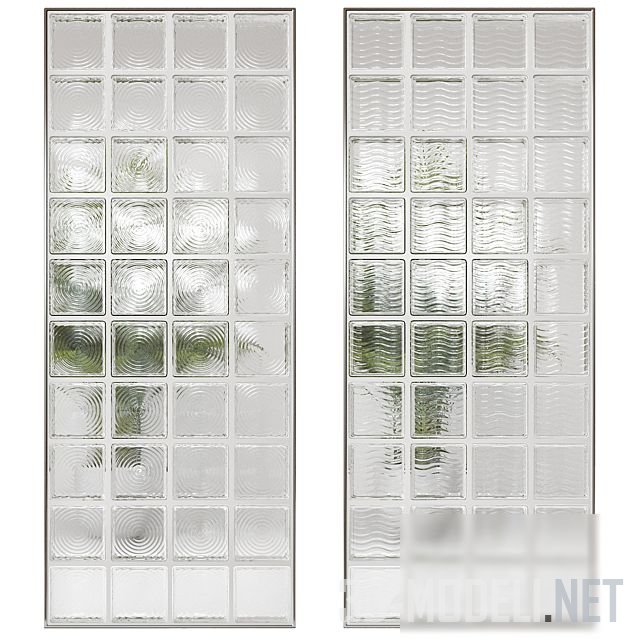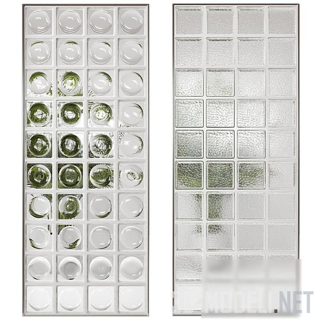 Стеклянный блок размером 145 x 145 x 50 мм (в архиве предусмотрено 4 формы стеклоблока и 4 текстуры стекла) позволит создать декоративный акцент, вставку, перегородку. Размер перегородки: 2565 x 1065 x 50 мм.