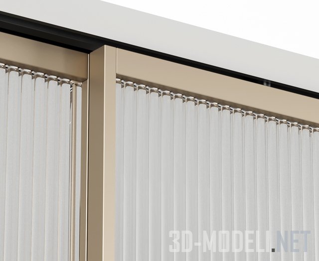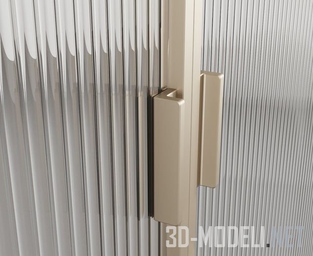 Два типа современных раздвижных дверей с заполнением из рельефного стекла двух видов: в виде квадратных фацет и в виде вертикальных полос. Четыре створки. Профиль золотистый, отделка матовый металл. Размер проема 500 х 280 см. стекло, двери