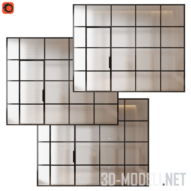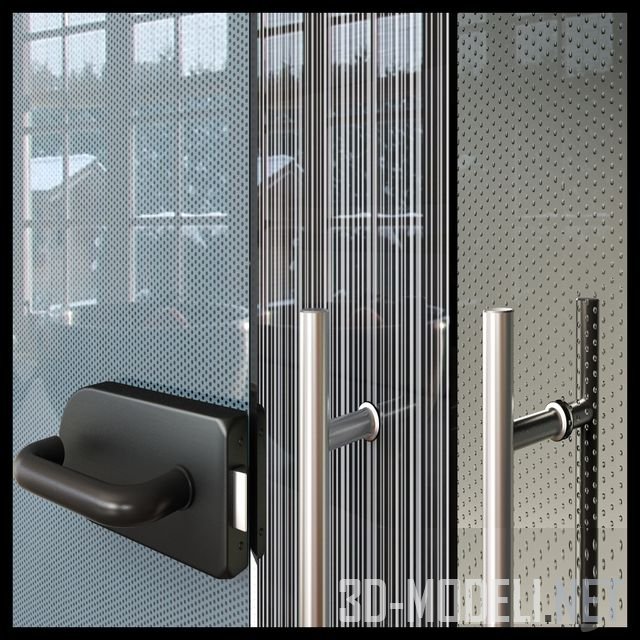 Набор элементов для формирования ограждения из стекла. Архив содержит стеклянное ограждение и поручень в четырех различных конфигурациях, а также другие необходимые элементы.