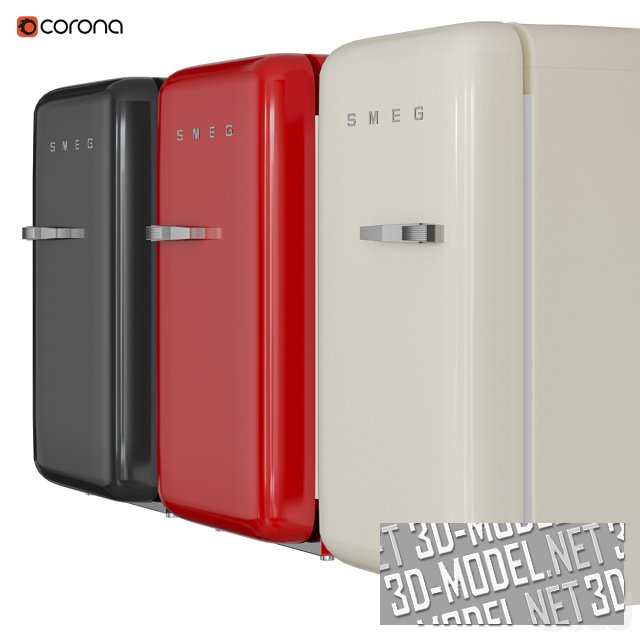 Серия холодильников FAB от Smeg в ретро-стиле, с цветными корпусами. Четырнадцать приятных цветов создают в ансамбле с округлыми формами глянцевых корпусов и хромированными элементами атмосферу больших автомобилей середины ХХ века. Крупная хромированная надпись «S M E G» подчеркивает эту стилистическую «изюминку». Представлены холодильники нескольких типоразмеров из этой серии. Двухкамерные и однокамерные - FAB10(97х65,9х54,5см); FAB30(170х80х60см) и FAB38(205х85х70см).