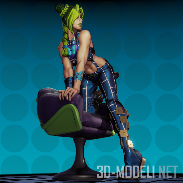 Женский персонаж аниме и манги, Jolyne Kuujou (Джолин Куджо) Дочь Джотаро Куджо, главная героиня-женщина в цикле «JoJo's Bizarre Adventure». Архив содержит полностью готовую к 3d печати модель, с обнаженной версией без цензуры.