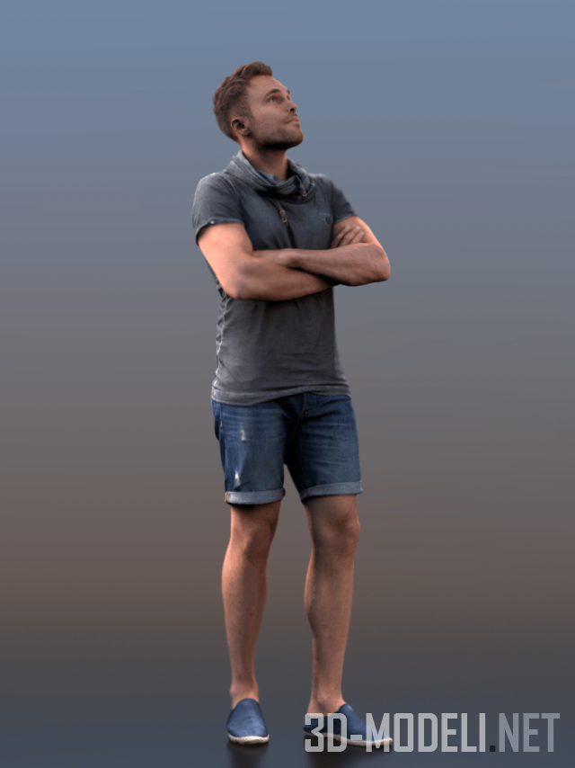 Молодой темноглазый парень Крис (Chris), с темными волосами средней длины, идущий с телефоном в поднятой к уху руке. На парне светло-серый худи под теплой клетчатой серо-бело-охристой рубашкой. Брюки темно-песочного цвета и потертые низкие белые кеды завершают образ.