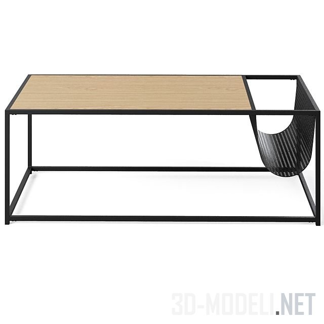 Два варианта (со столешницей под светлое и черное дерево) кофейных столиков Seaford от Actona. Прямоугольные столешницы на металлических каркасах дополнены газетницей из черного перфометалла. Габарит столика: 110х60х40см.
