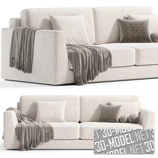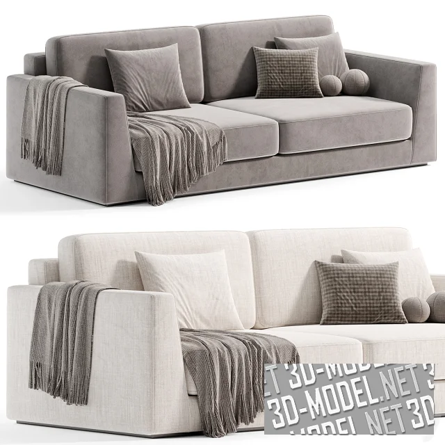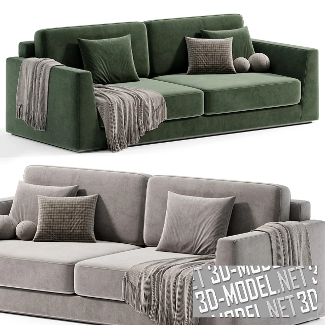 Прямой массивный современный двухместный диван Celine от Alberta Salotti. Производитель декларирует два габарита: 225х116х86см и 265х116х86см. Обивка представлена в трех вариантах: белая обивка с текстурой холста, темно-зеленый велюр и серый велюр теплого оттенка. Декоративные подушки двух типоразмеров и плед дополняют модели.