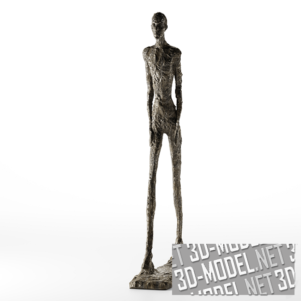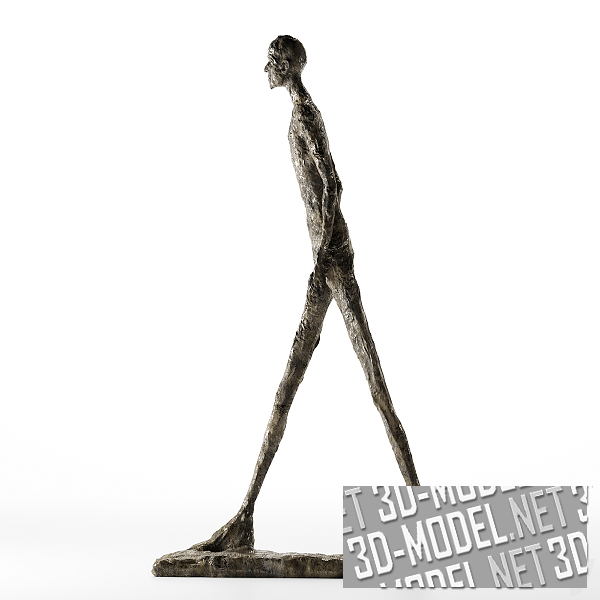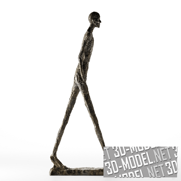 Интерьерный декоративный объект - современная скульптура «Шагающий человек I» от Alberto Giacometti. Фигура с гротескными чертами выполнена из цельного куска бронзы. Автор создал скульптуру в средине ХХ века. Размеры фигуры: 180,5х27х97см.