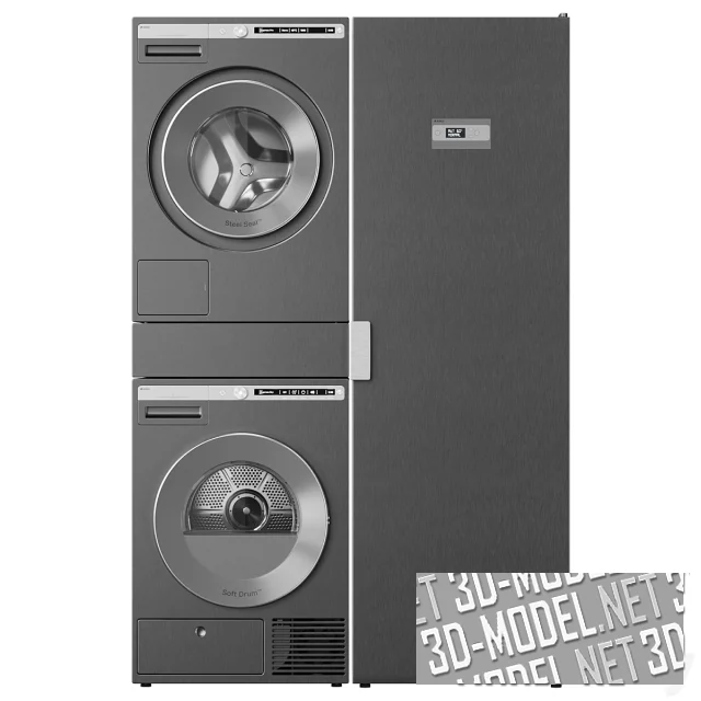 Стиральная машина Asko W4114C, сушильная машина Asko T408HD и сушильные шкафы Asko DC7774 и Asko DC7784 в наборе для оборудования современной прачечной. Устройства хорошо собираются в общий блок и обеспечивают основную линейку задач, поставленных потребителем. Варианты отделки (светло-серый или темно-серебристый браш) позволяют вписать технику в любой интерьер. Комплекты отличаются высотой сушильных шкафов (170 и 184см).