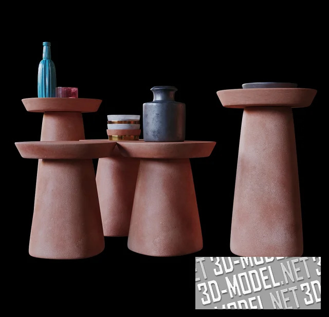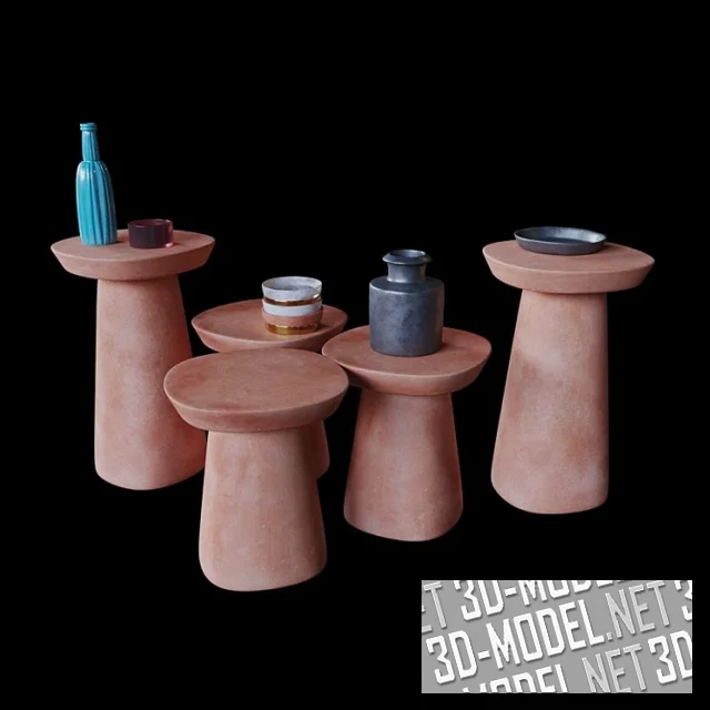 Phoenix — это серия небольших терракотовых журнальных столиков, разработанных дизайнером Паолой Навоне (