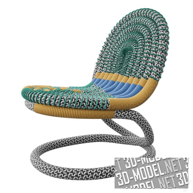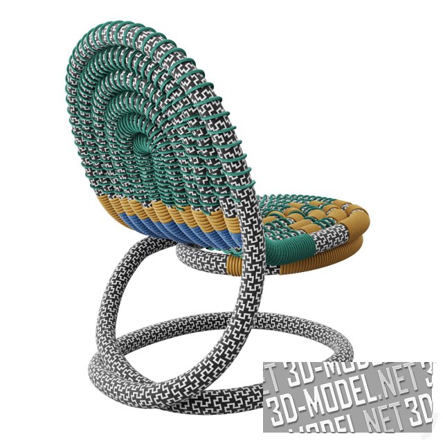 Современное кресло Peacock pair с оплеткой ручной работы от художницы турецкого происхождения Betil Dagdelen. Каркас кресла согнут из трубы с полиуретановым покрытием и художественной оплеткой. Поверхность трубы декорирована черным текстилем с белым крестообразным орнаментом. Оплетка из шерстяных волокон желтого, бирюзового и голубого цвета создает красивое дополнение в конструкции кресла. Габарит кресла: 86,36х66х81,3см.