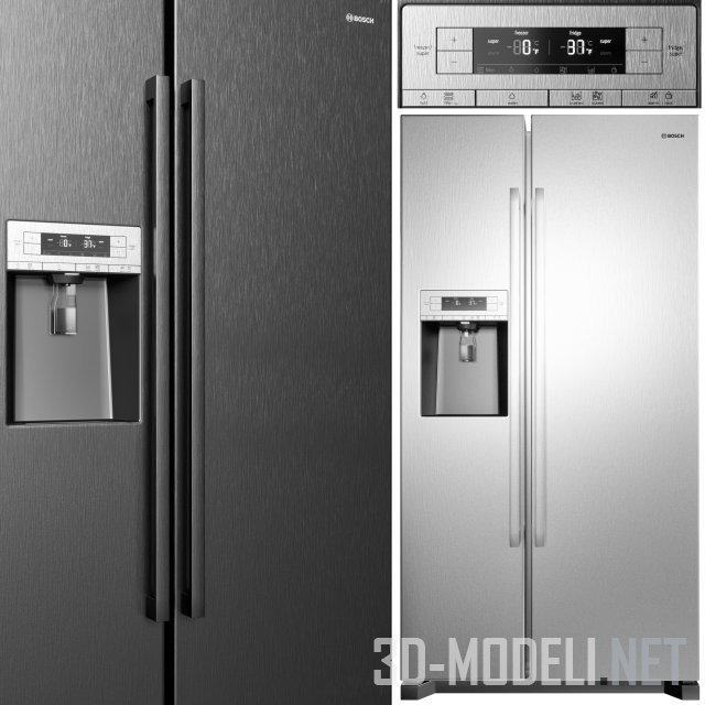 Современный американский холодильник со встроеннной морозильной камерой Serie 8 был разработан и изготовлен компанией Bosch. В самом холодильнике вместимость 375 литров, а в морозильной камере – 217 литров. На двери встроен сенсорный дисплей, что обеспечивает дополнительное удобство в управлении. Светодиодная лампа освещает холодильник равномерно, без бликов.