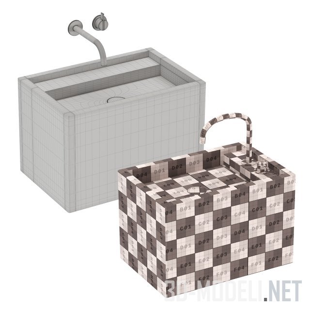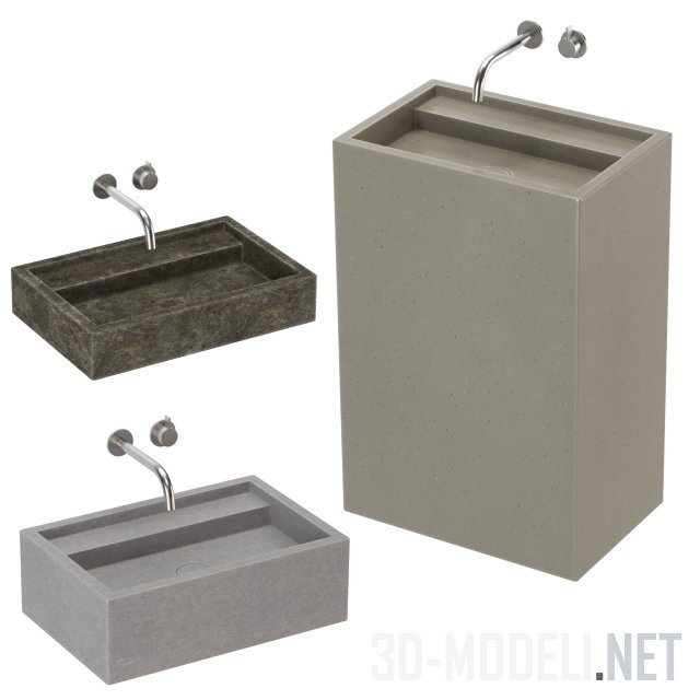 Piet Boon). Доступен в широком ассортименте материалов из натурального камня или твердой поверхности (включая слив из того же материала). Длина раковины 60 см, ширина 40 см, высота в 4-х вариантах: 12, 20, 40, 90 см. Также архив содержит две формы, десять различных материалов, два смесителя и цвета.