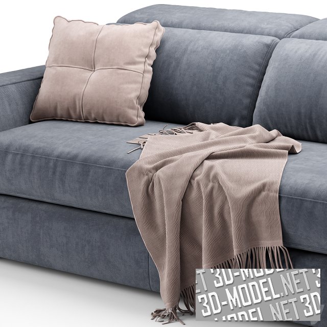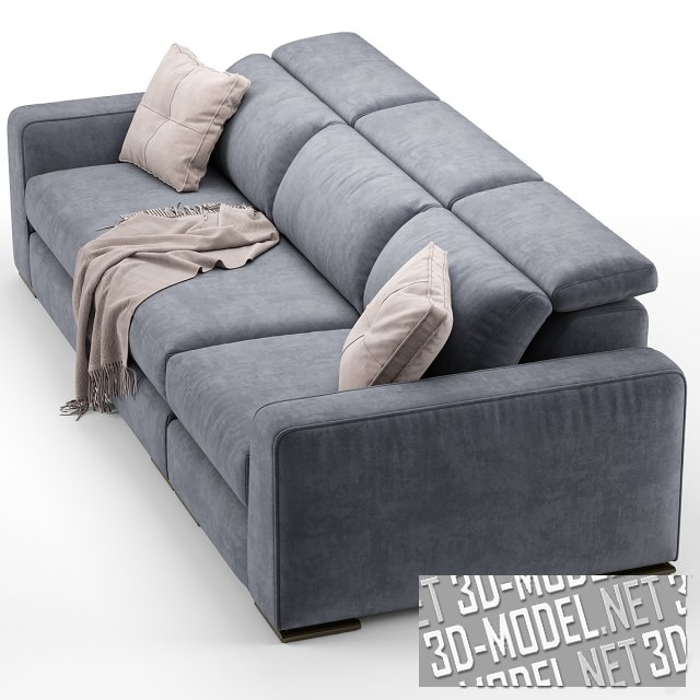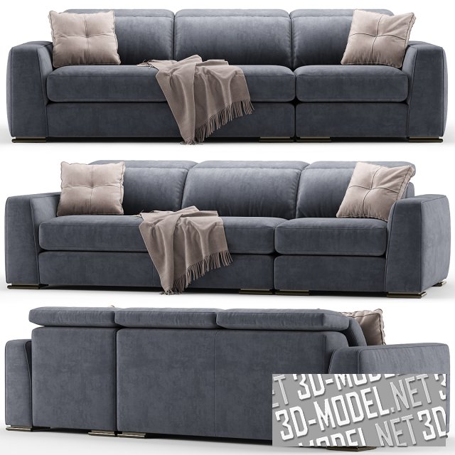 Современный серый прямой модульный диван от Calligaris, дизйн Stefano Spessotto. Диван с парой бежевых подушек и пледом. Конструктивно разделен на две ассиметричные секции (DTL3000S-DTL3000D, 73,8х172,6х109,2см и DTL1000S-DTL1000D, 73,8х93х109,2см ). Подлокотники невысокие, прямые. Сиденье и спинка разделены на три части.