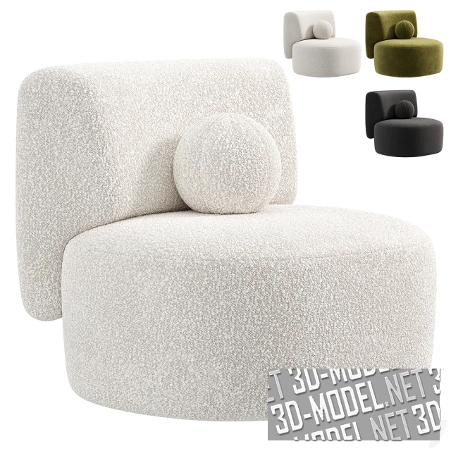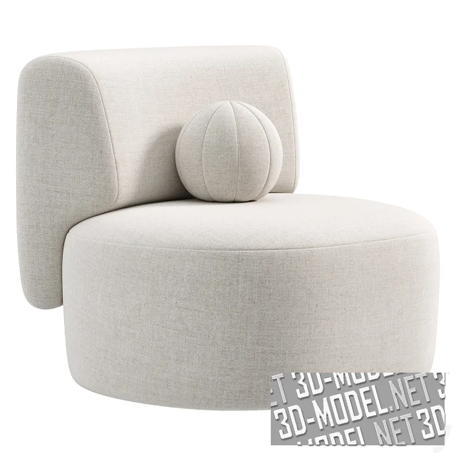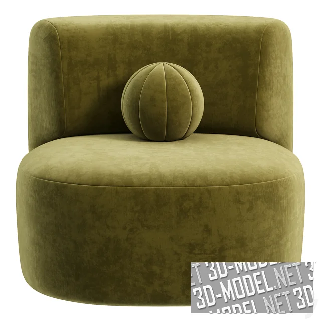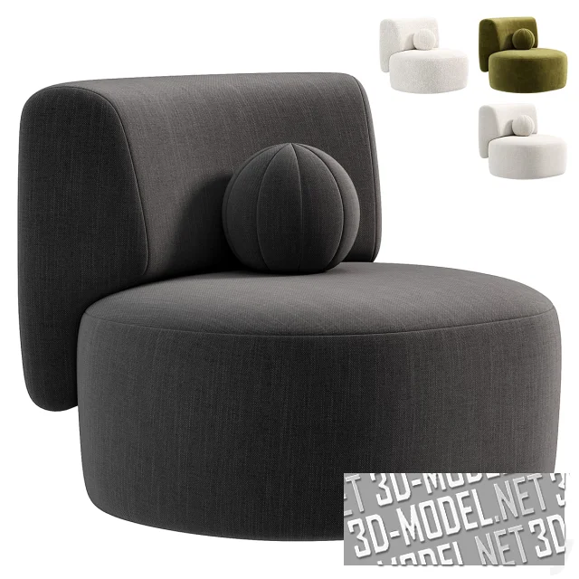 Современное компактное кресло и пуф Keren от Baxter (дизайнер: Christophe Delcourt). Спинка состоит из двух выгнутых элементов, состыкованных друг с другом и переходящих в задние опоры. Сиденье кресла - мягкая скругленная подушка, переходящая в переднюю опору. Пуф тоже состоит из трех элементов в том же стиле, объединенных в общую конструкцию, «срезанную» по плоскости сиденья. Габарит кресла: 65х65х75см. Габарит пуфа: 42х39х45см. Обивка кресел представлена в двух вариантах: матовый светло-оливковый и графитово-серый.