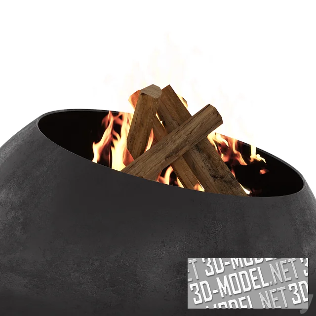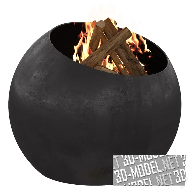 Christophe Ploye). Очаг выполнен в виде сферы (диаметр 70см), из толстого черного металла. Сфера установлена на срезанном основании, с чуть скошенным срезом в верхней части. В очаге горит костер. Компактный и оригинальный объект для размещения на террасе, в костровой зоне или в качестве камина.