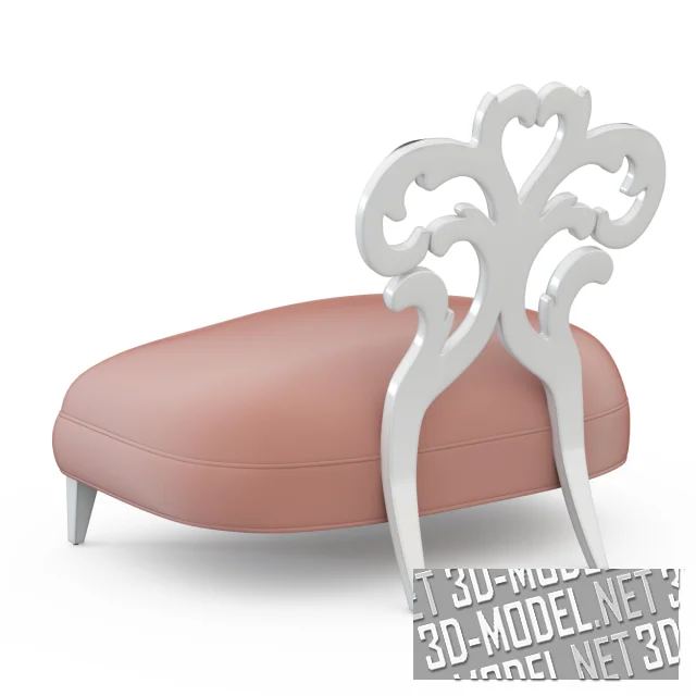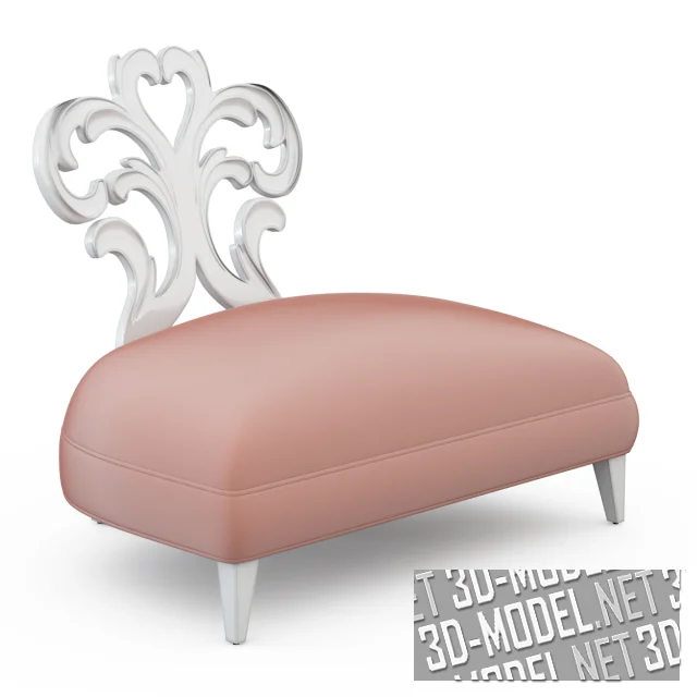 Акцентное кресло от Christopher Guy, модель 60-0319, с низкой посадкой, сочетающее в себе гламур от кутюра и игривые пропорции. Сиденье представляет собой просторную, слегка куполообразную подушку с обивкой пудрово-розового цвета, опирающуюся на конические ножки с полированной отделкой. За ним возвышается фирменная скульптурная спинка бренда, витиеватый лентовидный узор, напоминающий вырезанную вручную эмблему. Силуэт компактный, но в то же время изысканный, идеально подходит для гардеробных, номеров бутик-отелей или уголка гостиной, заслуживающего небольшого театрального эффекта.