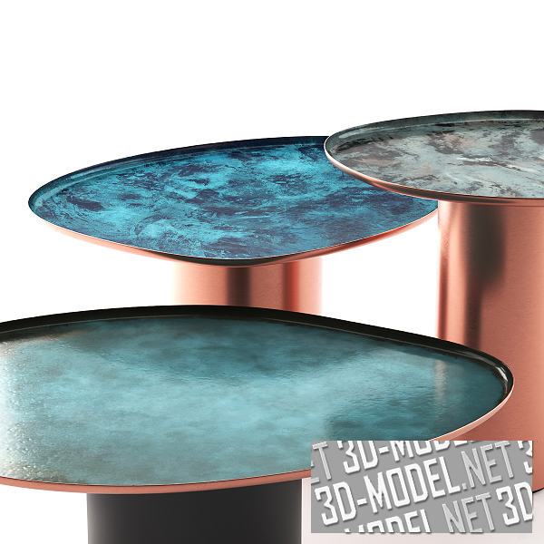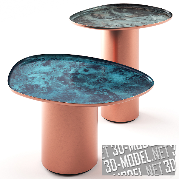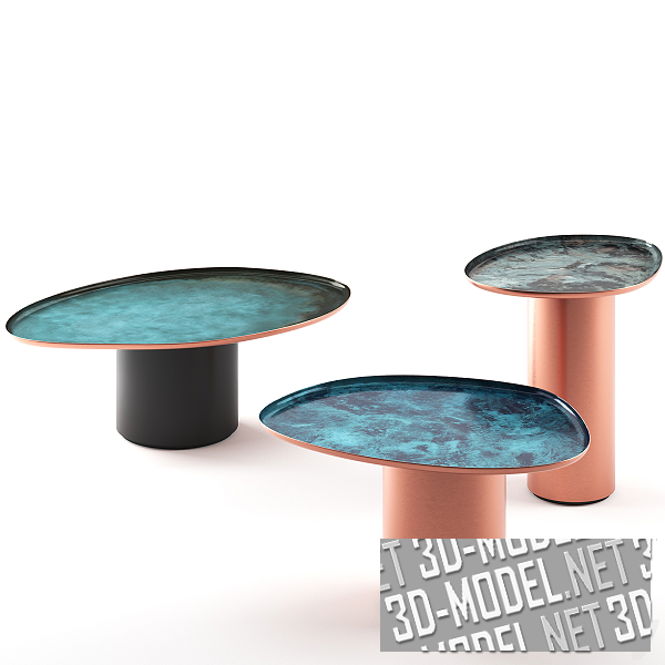 Вдохновленные неожиданными, неправильными формами капель воды на поверхности, дизайнеры Studio Zanellato Bortotto в 2020 году разработали коллекцию Drops, в которую входят журнальные столики трех разных размеров. Их мягкие, знакомые линии воплощают искусное мастерство и ноу-хау ремесленников De Castelli, которые возродили традиционную технику ручной оббивки и придания формы меди. Таким образом, столики являются кивком в сторону традиции, которая в современной интерпретации проявляется в изделиях, гармонично вписывающихся в повседневную обстановку. Предлагаются размеры: