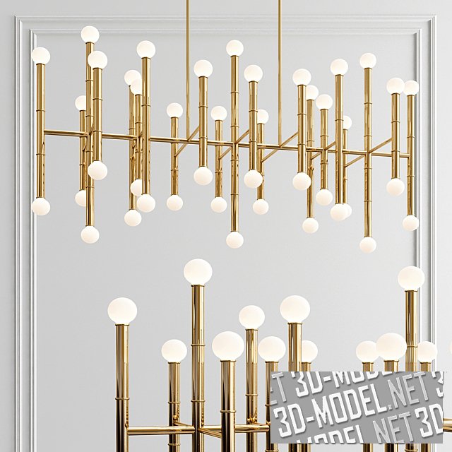Шары света Meurice от Robert Abbey вырываются из каркаса, напоминающего бамбук, придавая этой прямоугольной люстре ретро-отличия с качеством Голливудского Регентства. Доступна в трех классических вариантах отделки.