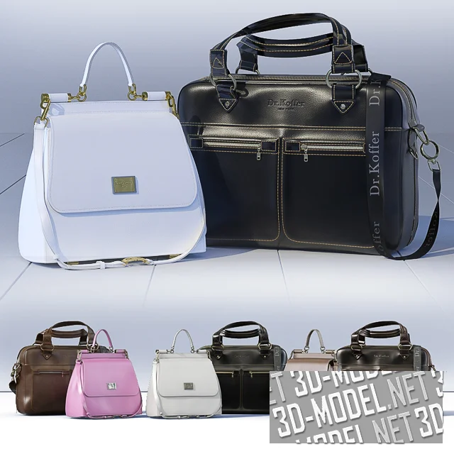 Девять классических дамских сумочек от ведущих фешн-брендов: Dolce&Gabbana и Louis Vuitton. Сумочки от Louis Vuitton представлены в трех моделях. Первая - с фирменным коричневым паттерном с логотипами, молочно-белыми ручками и дном. Вторая модель представлена в двух цветах: светло-голубом «Тиффани» и нежном светло-розовом. Третья модель с ручкой-цепочкой мелкого якорного плетения и крупным металлическим логотипом «LV».