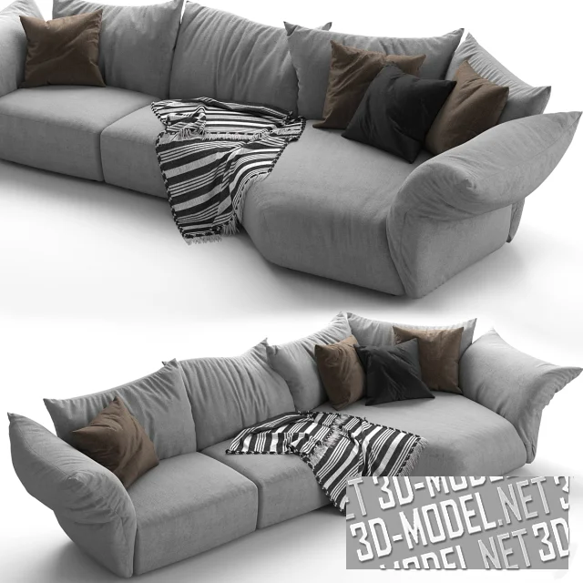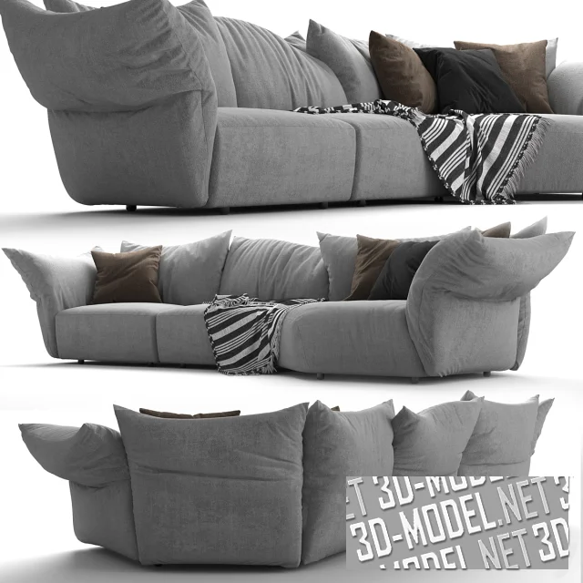 Девять текстурных подушек, напоминающих пуховки для нанесения пудры, прикрепленных к невидимой металлической ??раме в форме трубы, составляют основную конструкцию дивана. Диван очень удобный и мягкий, благодаря правильно подобранным, качественным материалам.