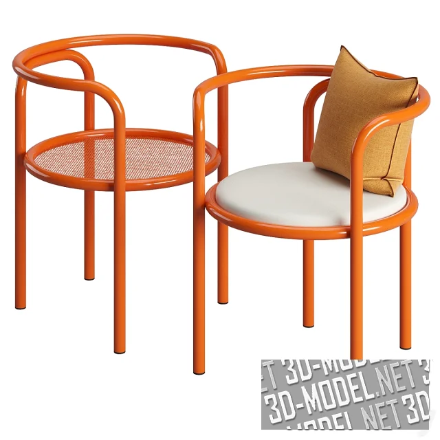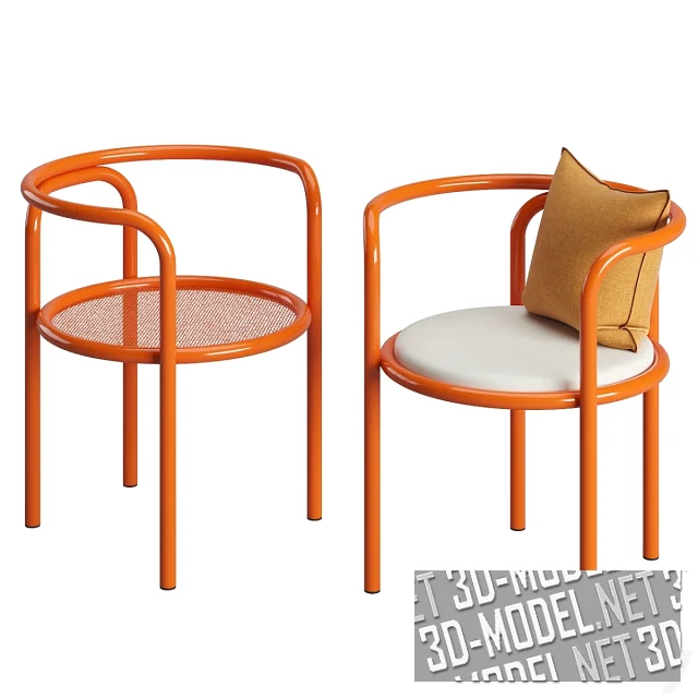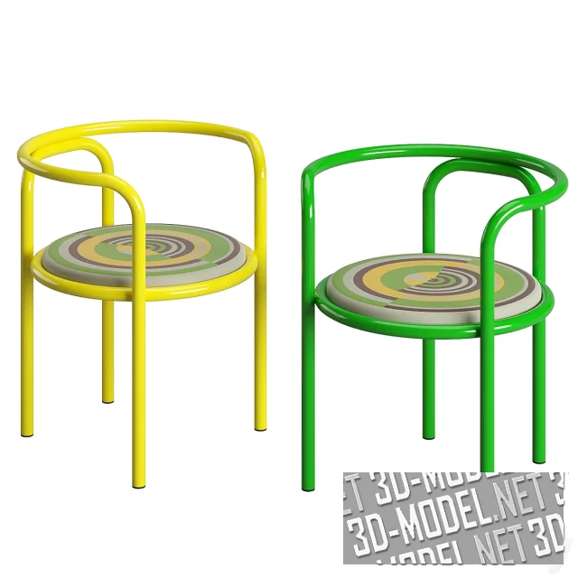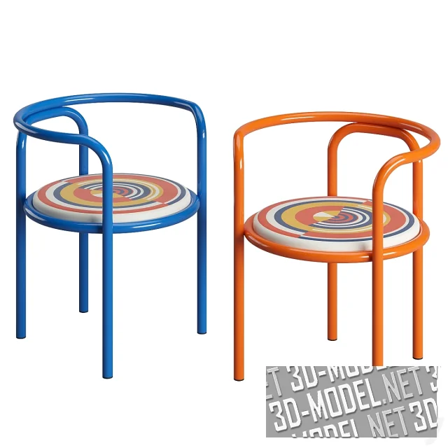 Современное переиздание круглого металлического стула от Gae Aulenti в 1964 году - модель Locus Solus от Exteta. Каркас из гнутых металлических труб. Наполнение круглого сиденья представлены в трех вариантах: тонкая металлическая сетка, белая мягкая обивка и белая мягкая обивка с цветным принтом (супрематическая композиция из фрагментов кругов). Габарит стула: 59х56х67см. Каркасы представлены в четырех ярких цветах: желтом, зеленом, синем и оранжевом. Модель с белой обивкой дополнена бледно-оранжевой квадратной подушкой.