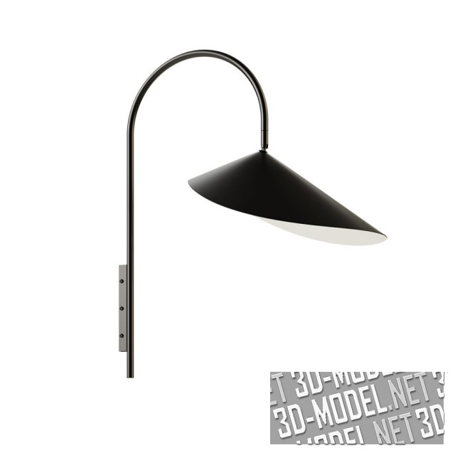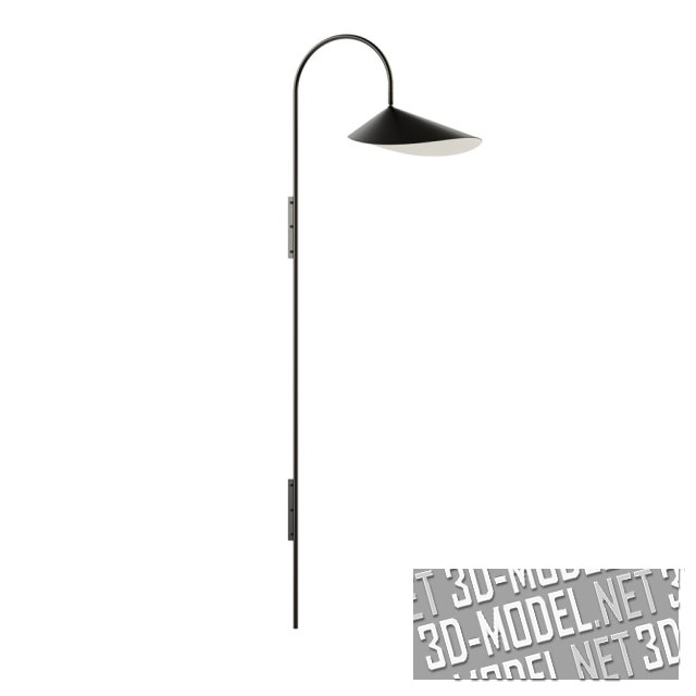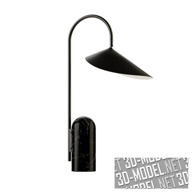Набор светильников Arum от производителя Ferm Living. Серия состоит из настольной лампы, торшера и настенных светильников. Напольная лампа Arum характеризуется черным массивным мраморным основанием. Абажур подвешен к изогнутой металлической арке в форме листа.