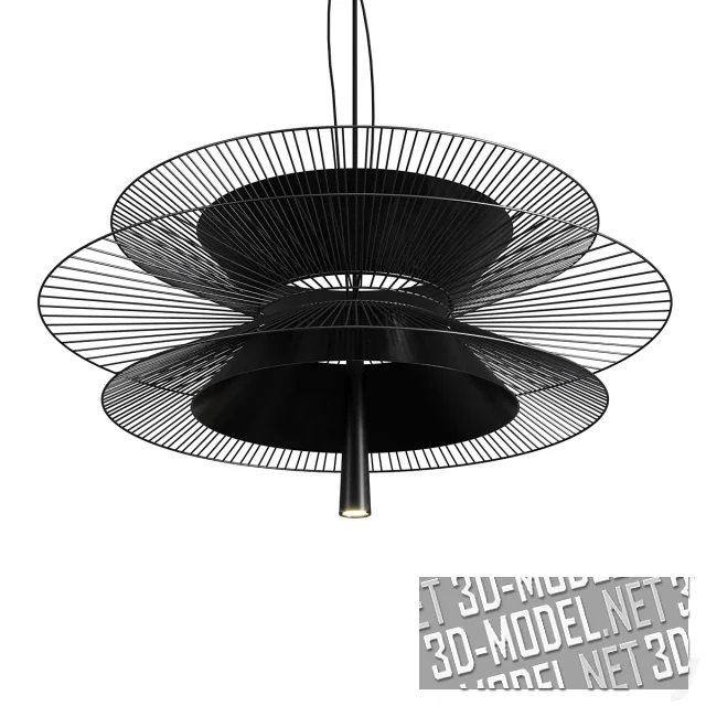 Завершает комплект подвес Papillon от французского бренда Forestier (создан дизайнером Элизой Фуэн). Сделанный из трех венчиков черной лакированной металлической проволоки, светильник отличается нежностью и воздушностью и обеспечивает оригинальное освещение с игрой тени и света.