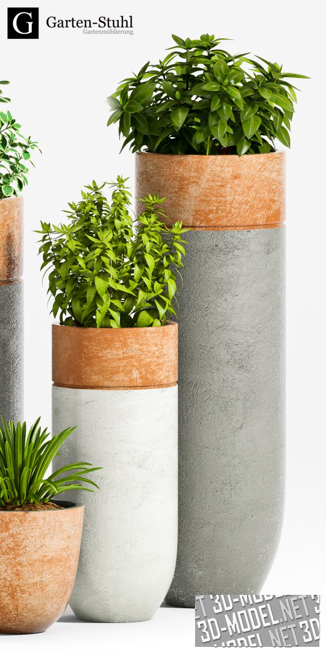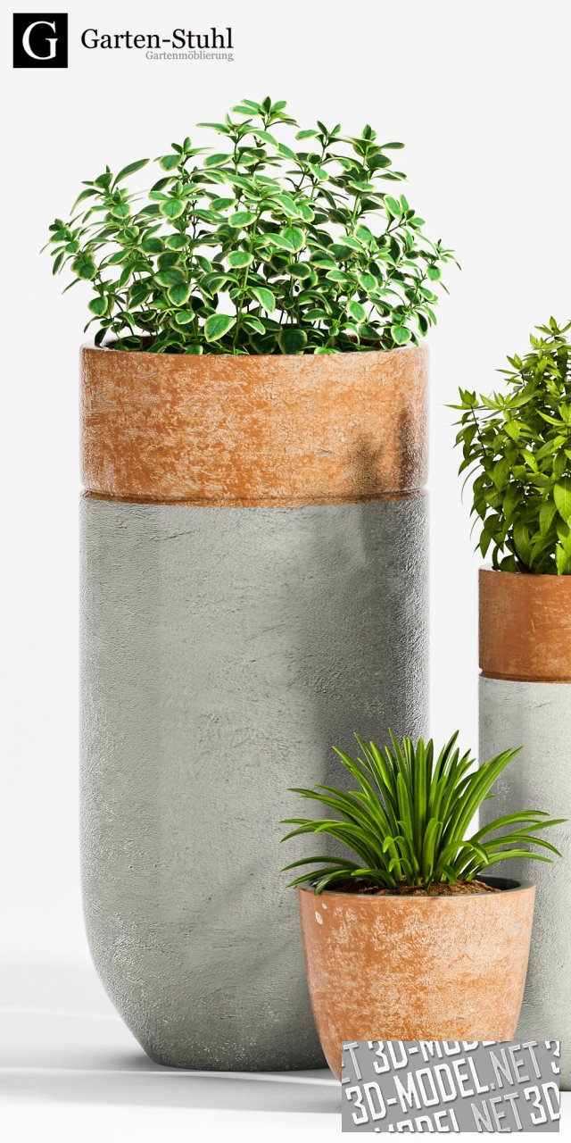 Растения в горшках из бетона и керамики от Garten-Stuhl