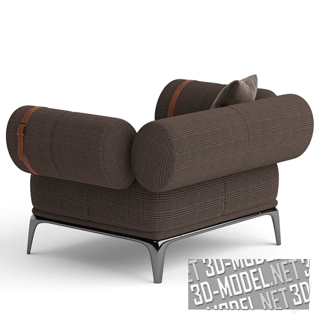 Gianfranco Ferre), проявляющаяся в использовании тканей для мужской одежды, прослеживается в обновленном винтажном стиле кресла Phoenix. Кресло с подлокотниками и спинкой со слегка наклоненной наружу овальной частью, обитыми узловатой тканью. Металлическая основа с черной хромированной отделкой выражает типичное для бренда столичное настроение. Размер кресла: 1250 х 970 х 700 мм.