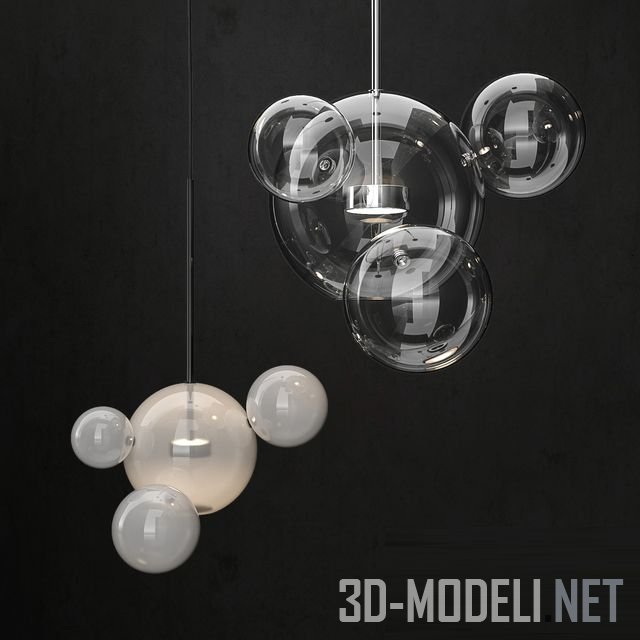 Современный подвесной светильник Bolle (BLS04, BLS06) от итальянского бренда дизайнерского освещения Giopato & Coombes. Плафоны люстры выполнены из матового стекла, а основание – из латуни.