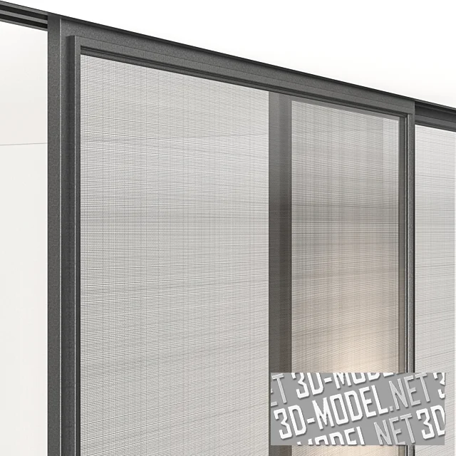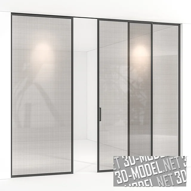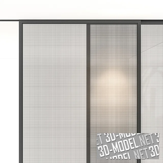 Giuseppe Bavuso) – это лаконичные панели в тонком алюминиевом профиле с закаленным стеклом. Внутри двухкамерного стеклопакета заложена мелкая металлическая сетка: она мягко рассеивает свет, добавляет приватности и дает спокойный, «текстильный» рисунок без потери воздуха и глубины. Конструкция рассчитана на аккуратное зонирование: от гардеробных и ниш до перегородок в жилых интерьерах, офисах и шоурумах. Плавный ход, встроенная ручка, чистая геометрия и легко настраиваемые полотна. Габариты базового модуля: длина 3500 мм, высота 2925 мм.