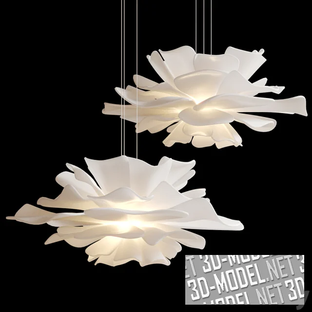Подвесной светильник в виде белого крупного цветка Juniper Love Me Not (дизайнер Паскаль Жирарден). Ручная формовка лепестков из люцита (полиметил метакрилата) делает каждый светильник неповторимым. Габарит светильника: 91х40см.