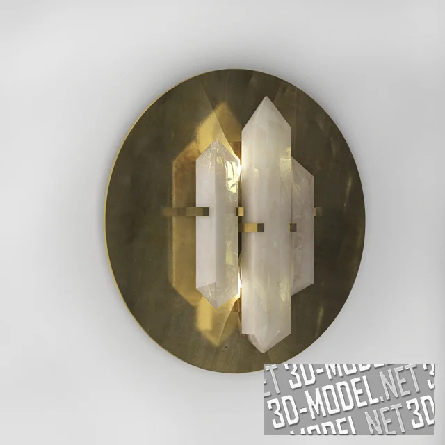 Под столом размещен приставной цилиндрический столик ALTA с латунным корпусом и черной мраморной круглой столешницей. Бра HALCYON ROUND на стене возле зеркала и настольная лампа HALCYON продолжают тему латунных кругов и прямоугольников. Круглые основания бра и латунный кубик рефлектора на ножке в настольном светильнике дополняют крупные кварцевые кристаллы-«карандаши».